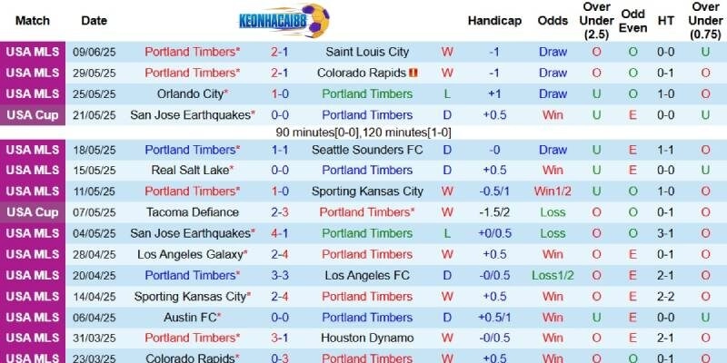 Từ những dữ liệu thống kê thực tế, Keonhacai mang đến lựa chọn chắc ăn nhất cho anh em về cặp đấu Portland Timbers vs San Jose Earthquakes, 9h30 ngày 14/6: